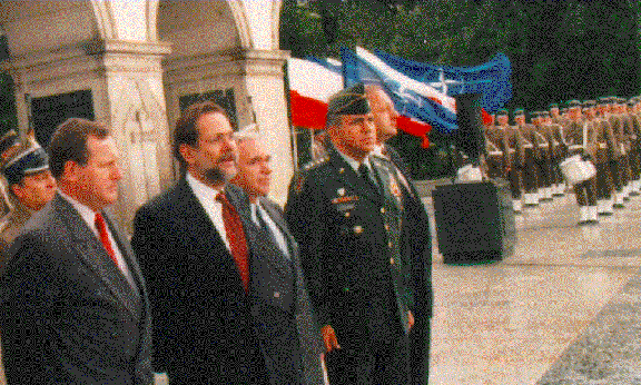 Solana, Bulgarian President Zhelyu Zhelev, SACEUR General George Joulwan,